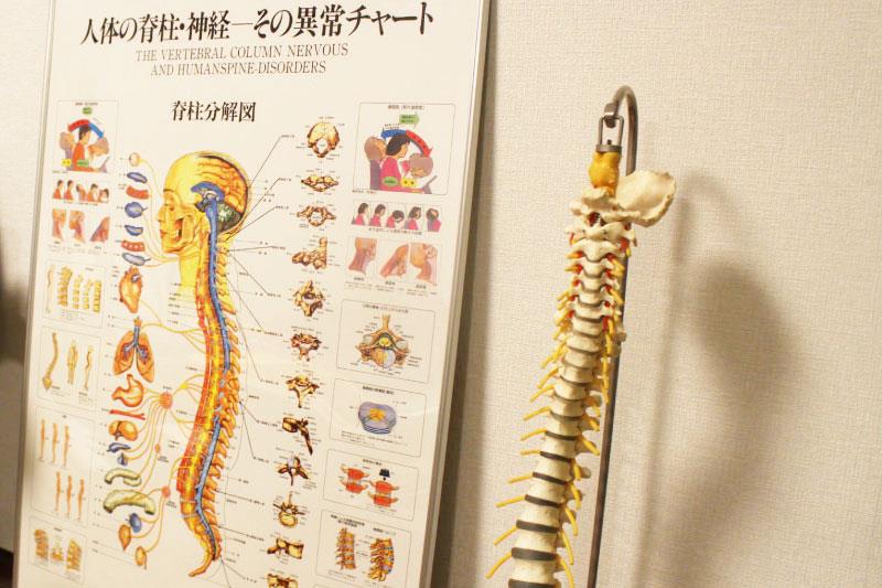 神経系の働きを改善するために、神経出入り口である背骨や骨盤の調整をします。
